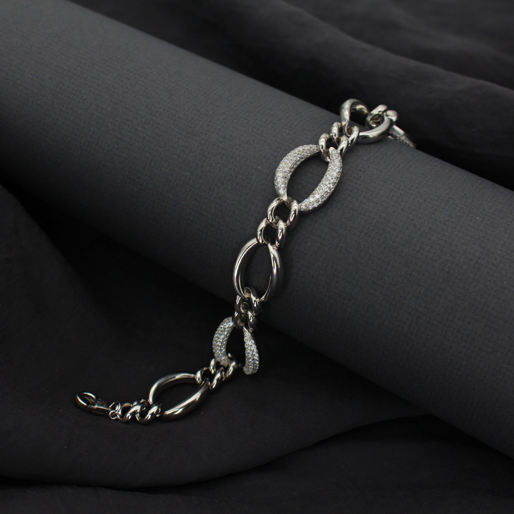Step into the world of statement elegance with the Celestial Link Charm Bracelet, a bold piece inspired by the cosmic unity of form and sparkle. Featuring alternating oval links in high-gloss metal and micro-pavé crystal settings, this bracelet blends strength with femininity. Ideal for high-fashion evenings, parties, and statement styling.