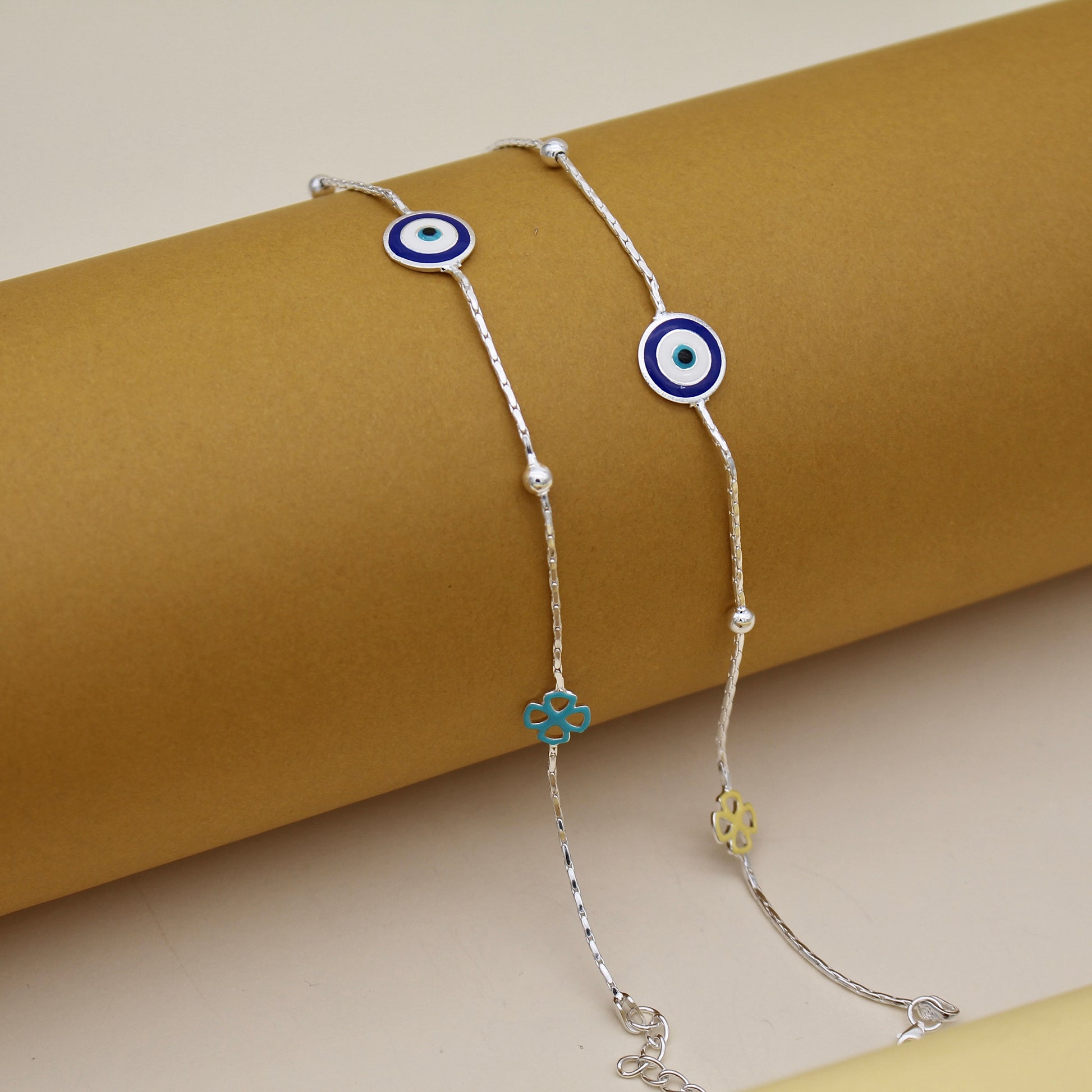 A timeless design with round blue evil eye charms, this anklet is simple, graceful, and steeped in tradition—styled for the modern child. we are selling it single piece.