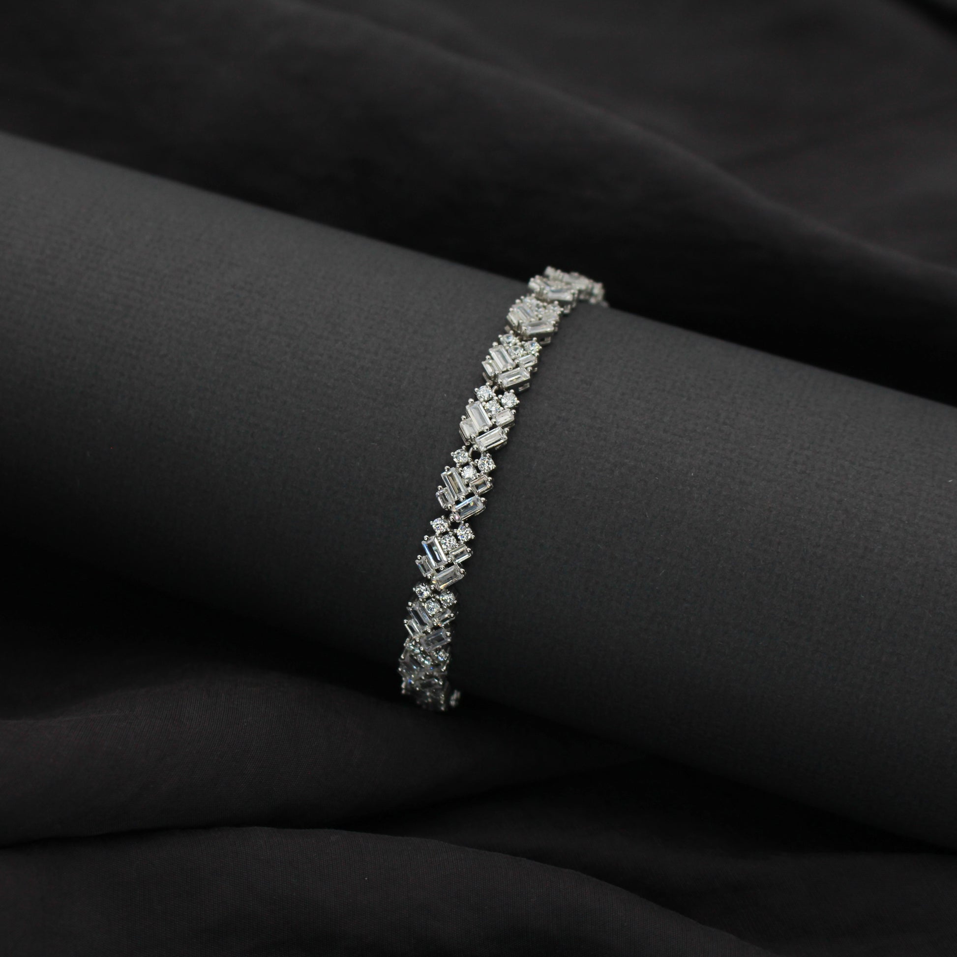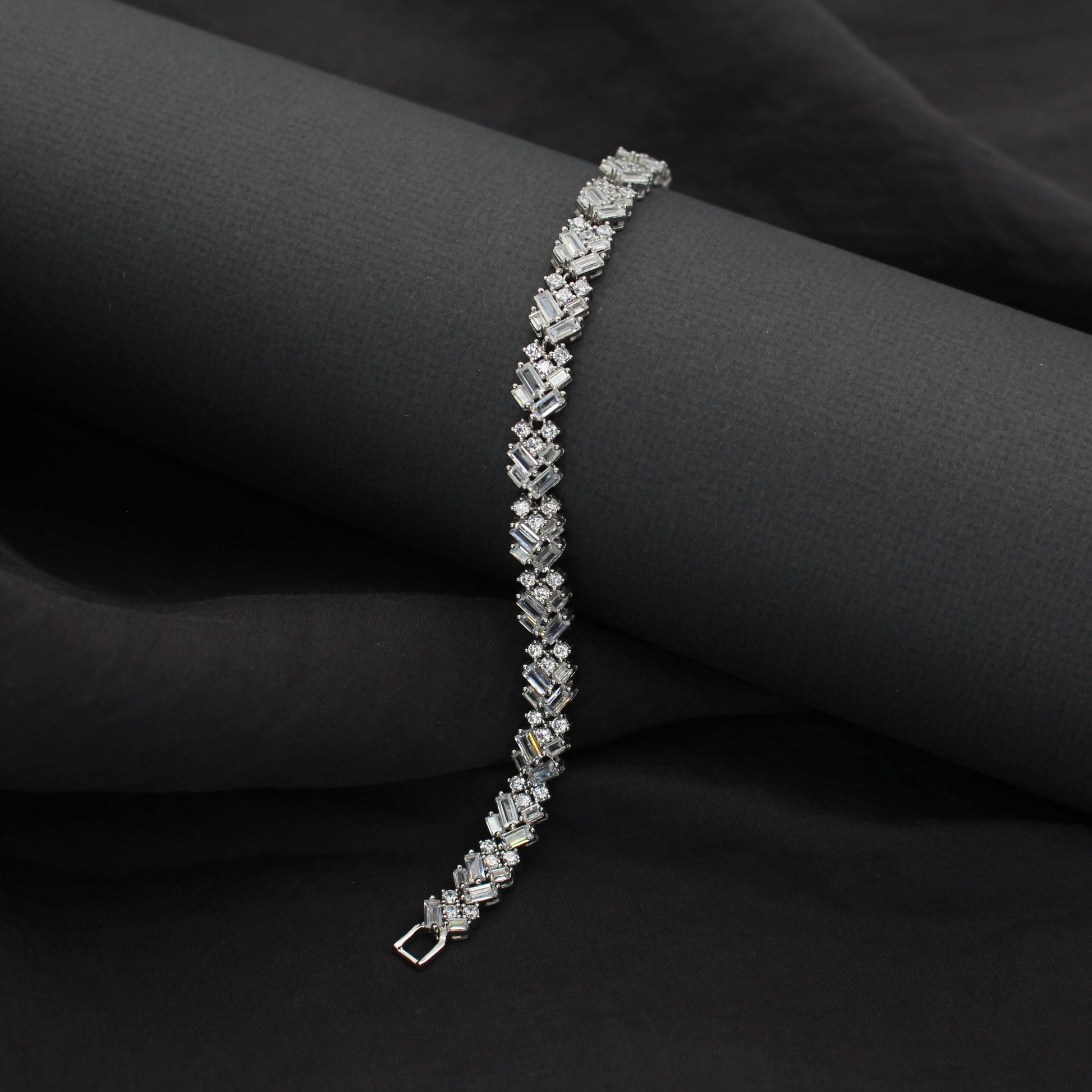 Unleash brilliance with the Crystal Cascade Bracelet — a symphony of baguette and round-cut stones meticulously arranged to sparkle from every angle. This piece redefines luxury with its intricate flow, mirroring waterfalls of light and elegance. A dream accessory for weddings, galas, or when you just want to glow.