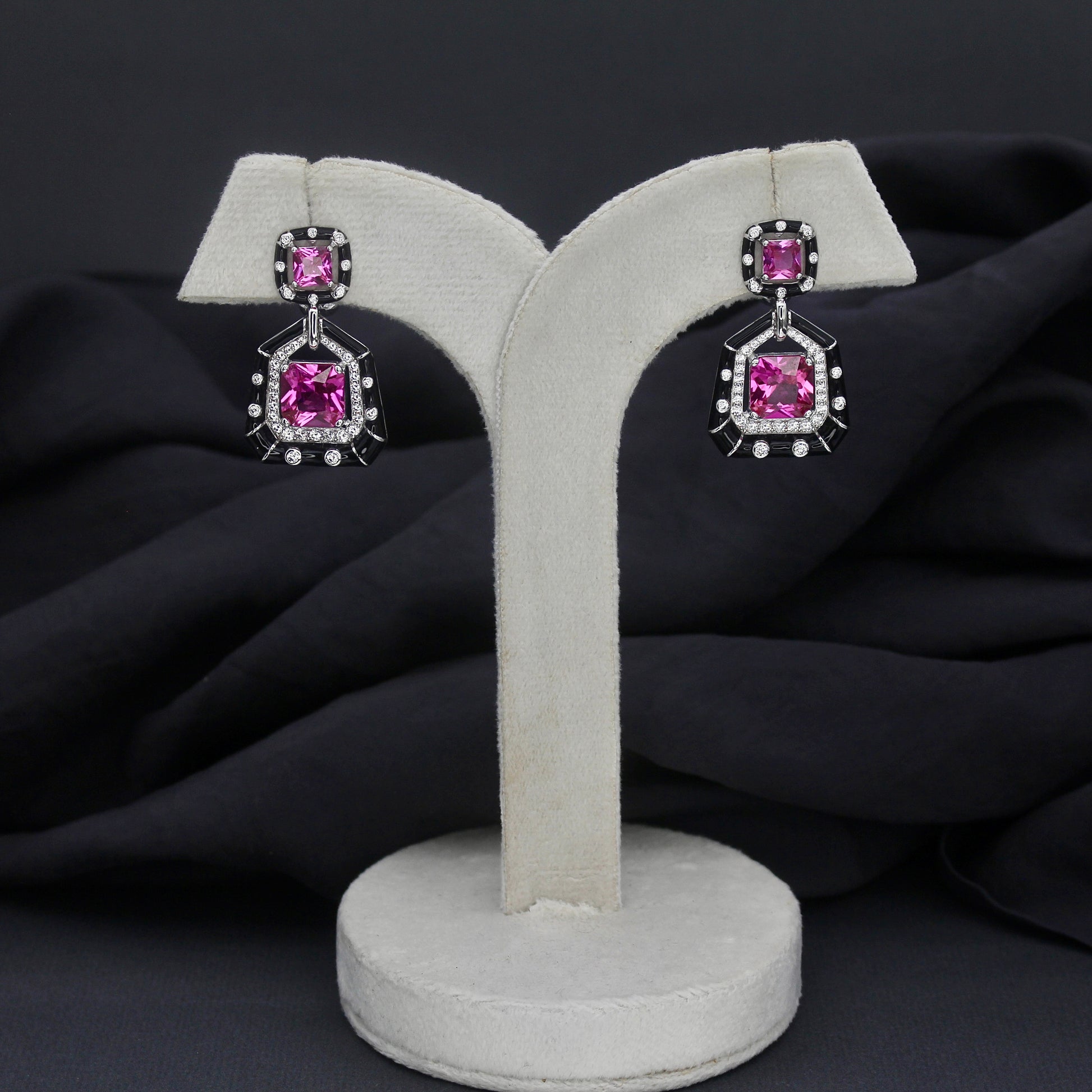 ✔ Geometric drop design with fuchsia stones