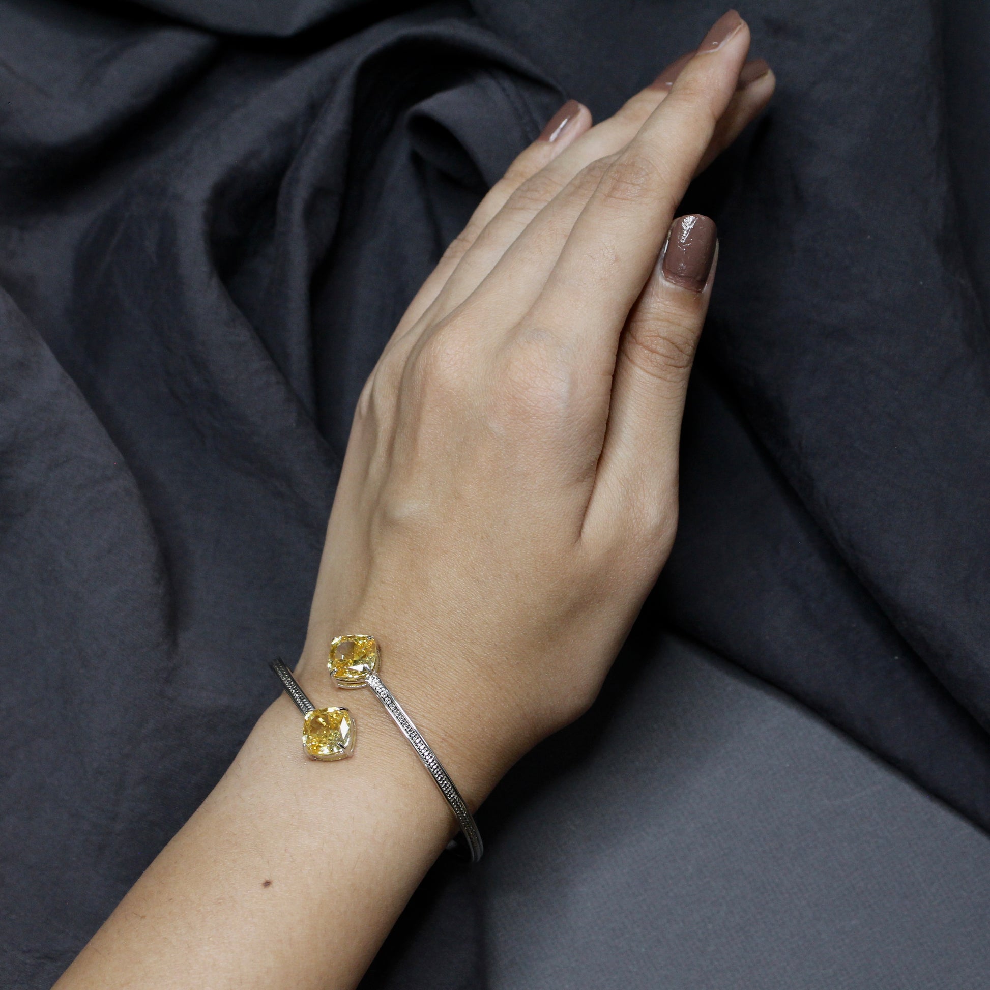 ✔ Open bangle with vibrant yellow cushion-cut stones