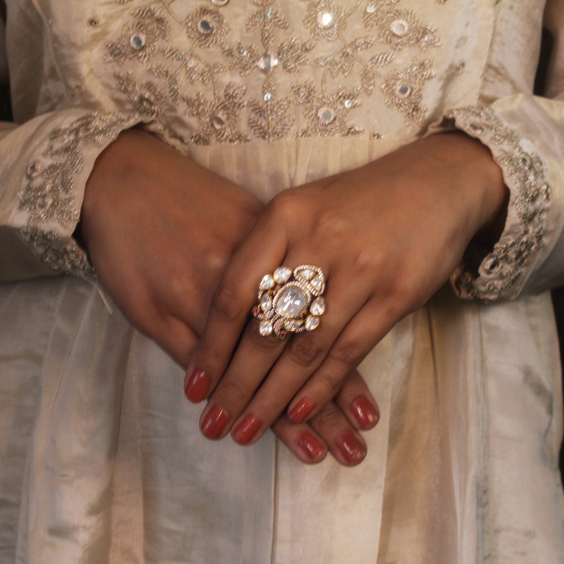 ✔ Handcrafted with uncut kundan stones for a royal finish