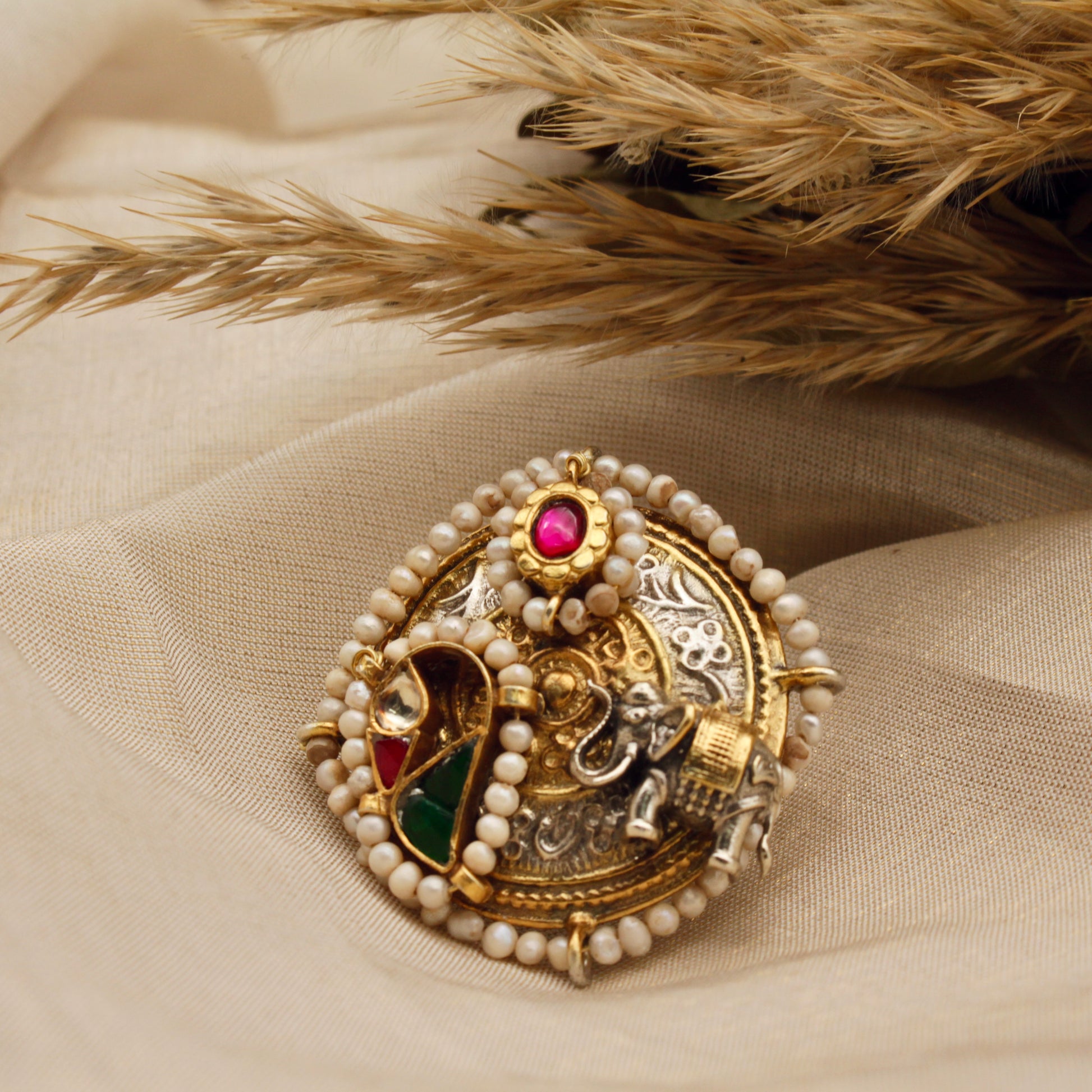 ✔ Embellished with ruby, emerald, pearls, and natural stones