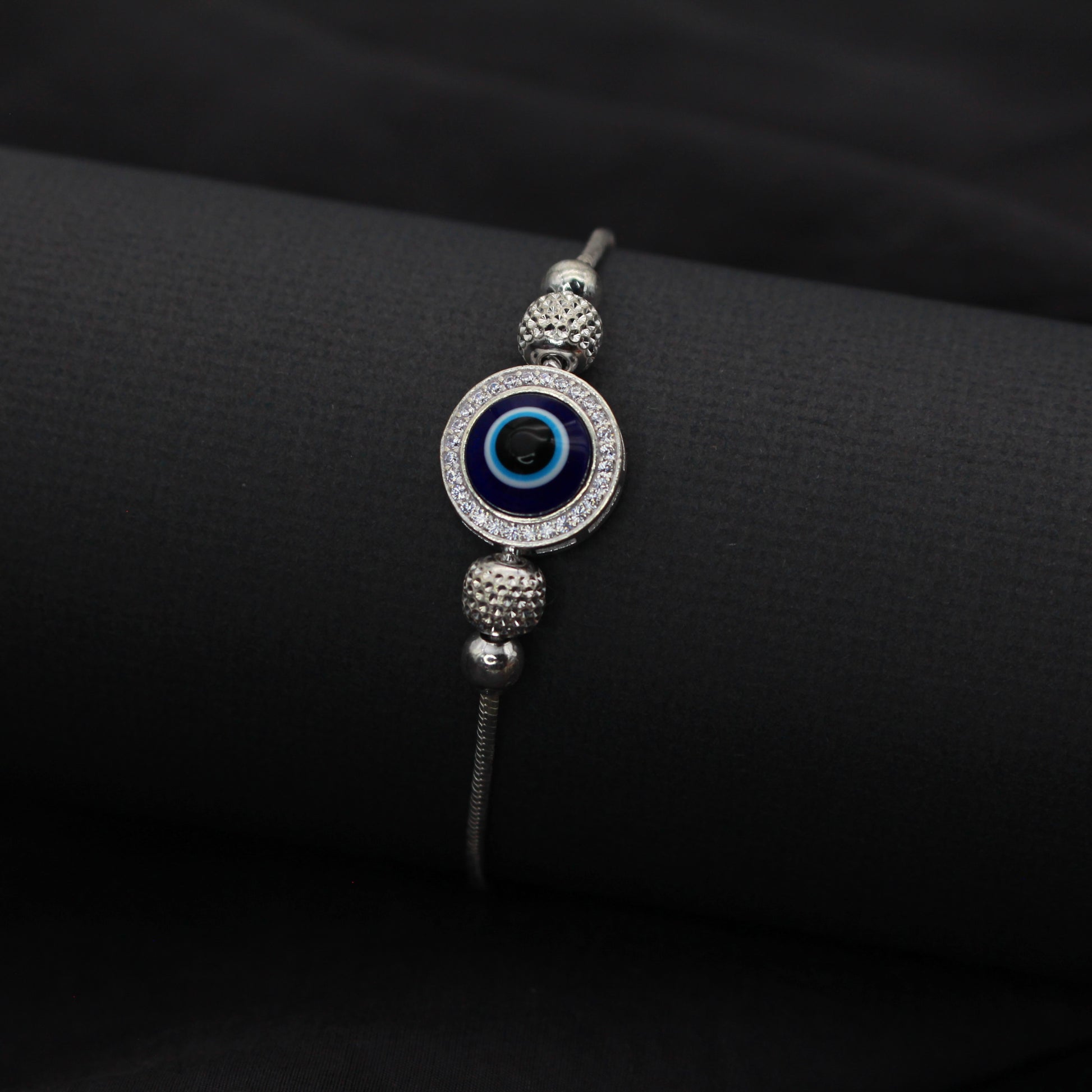 Protect your aura in style with the Nazar Elegance Evil Eye Bracelet. Blending cultural symbolism with modern charm, this piece features a striking central evil eye charm encircled by sparkling accents and textured beads. A talisman of good vibes and sharp fashion sense, this bracelet is a subtle statement you’ll wear every day.